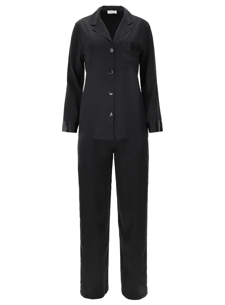 Dieser luxuriöse Seiden-Schlafanzug ist aus Seidensatin aus reiner Seide und hat einen geradlinig-klassischen Schnitt. Die feine Seide fällt elegant und fließend und durch ihre temperaturausgleichenden Eigenschaften ist dieser Schlafanzug sehr angenehm und hautsympathisch. Alle Abschlüsse und Säume sind besonders fein verarbeitet und der elegante Schlafanzug ist daher entweder zum Schlafen oder als gemütliche Homewear tragbar.