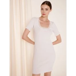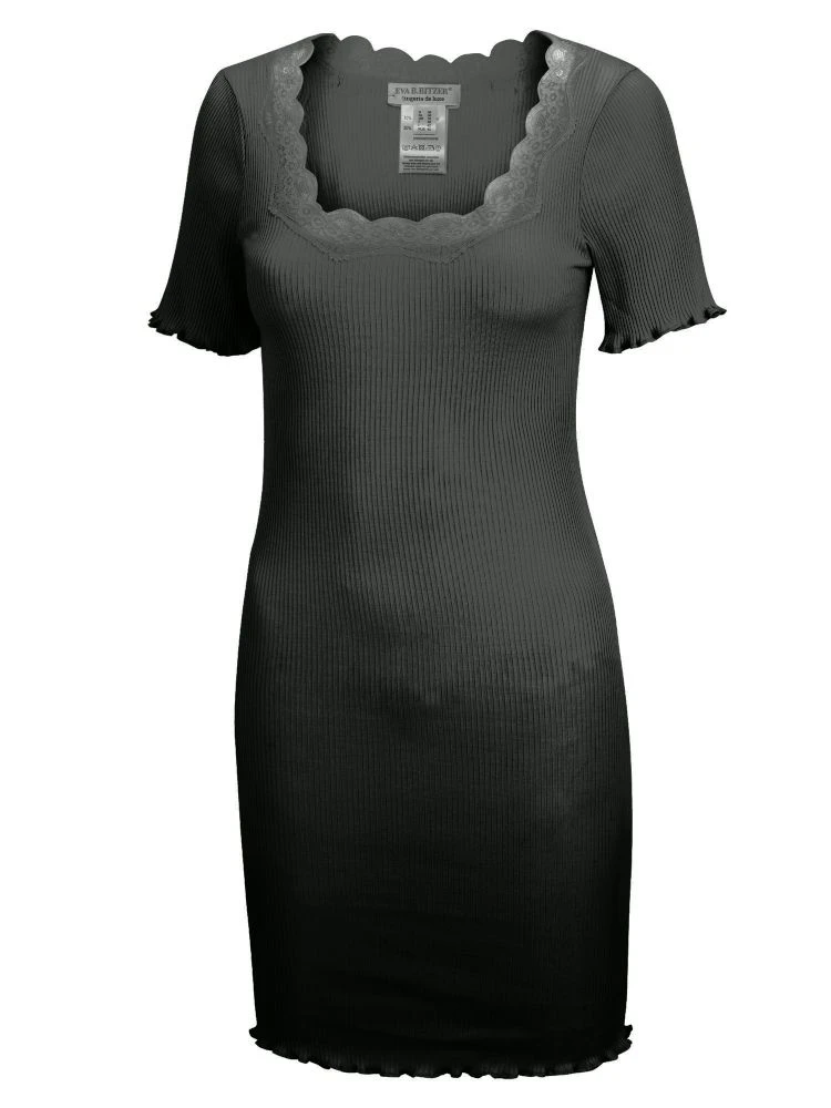 Die Hochwertigkeit des Stoffes (70% Seide, 30% Baumwolle) wird durch den klassischen Schnitt und die Verzierung mit floraler Wäschespitze (100% Polyester) unterstrichen. Das Nachtkleid hat kurze Ärmel und eine unkomplizierte Passform. Es kann als als Nachtwäsche und Homewear getragen werden.
