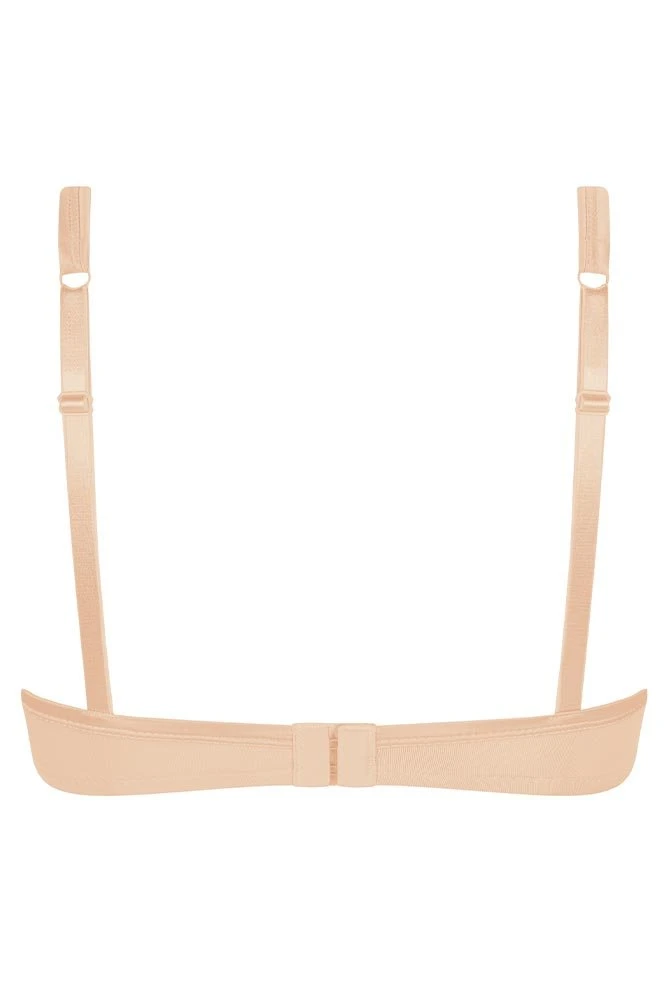 Eine dekorative Zierblende, ein breiter Satinbesatz am Dekolleté, der in die Träger übergeht, ziert den Soft-BH genauso, wie ein hübsches Strass-Steinchen am Mittelsteg. Die leicht wattierten, geformten Cups mit Zwei-Wege-Stretch Mikrofaser sind blickdicht und nahtlos. Unter der Kleidung zeichnen sich daher keine Konturen ab. Die Cups gleichen Gewebe-Unebenheiten hervorragend aus und schmeicheln dem Körper.