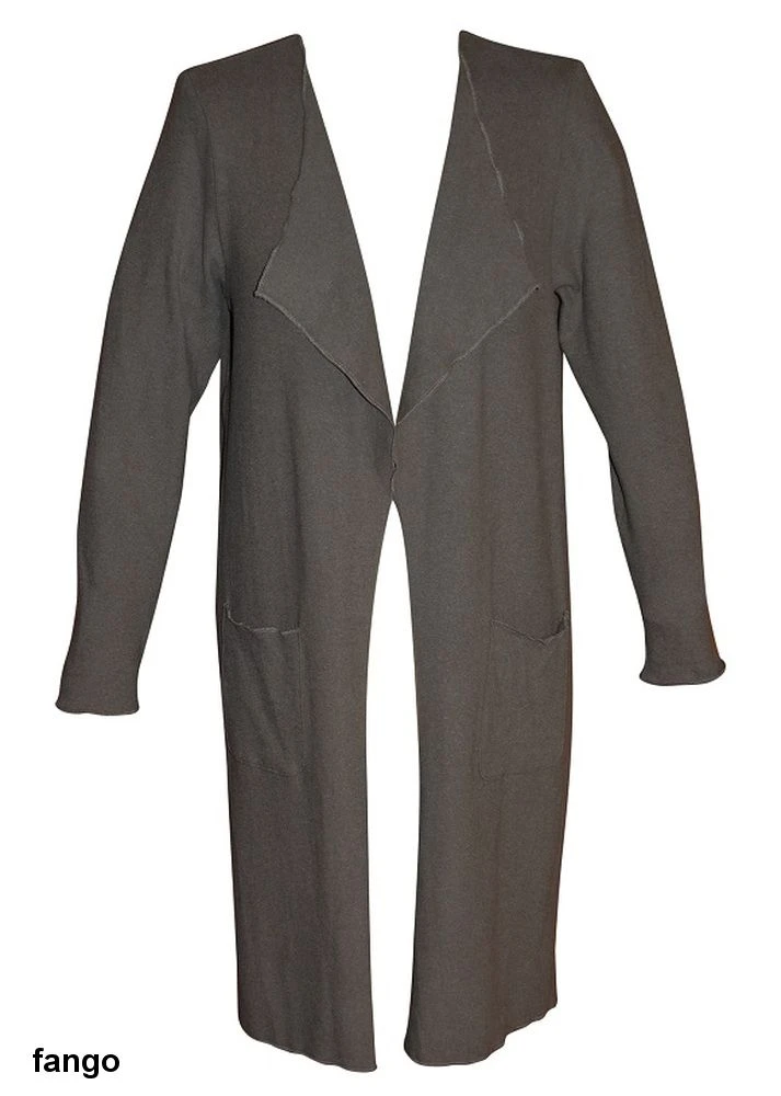 Das Grundmaterial für den Morgenmantel Casual ist ein leichter, weicher Feinstrick aus Baumwolle-Viscose-Mischung, welcher in den Farben fango oder vanille erhältlich ist. Der kurze Mantel hat lange Ärmel. Dieses Modell ist in den Größen 36 – 48 (deutsche Größen) erhältlich. Ausverkaufte Größen sind nicht nachbestellbar.