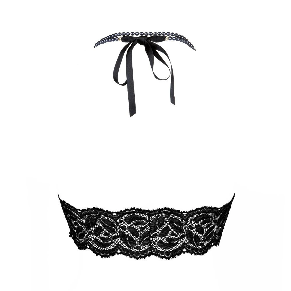 Der Perlen-BH Begos ist in den Farben schwarz oder rot erhältlich. Die doppelt gearbeiteten Träger aus Manacor – Perlen werden mit einem Satin-Schleifchen geschlossen oder können nach Belieben auch komplett abgenommen und als Halskette getragen werden. Das Decolleté ziert ein doppelter Ring aus kleinen Manacor-Perlen.