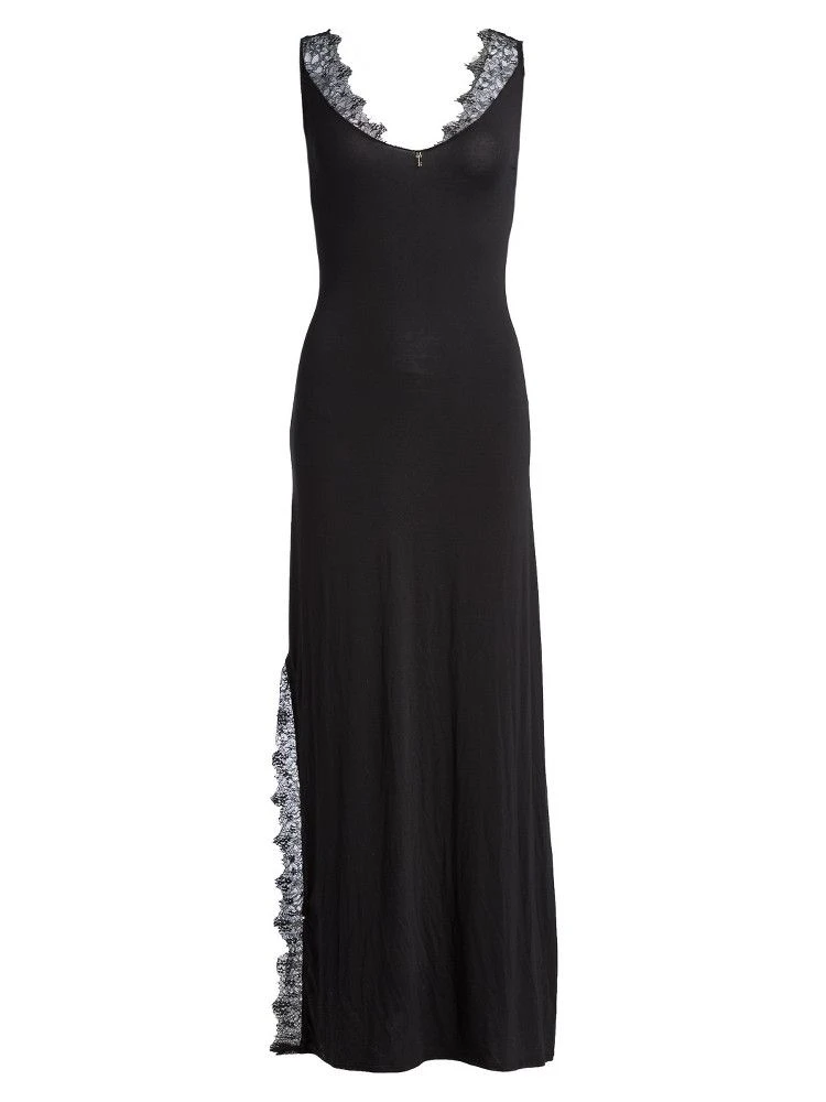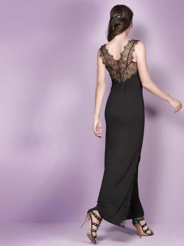 Dieses Nachtkleid ist in den Größen XS (36) bis XXL (46) erhältlich in der Farbe schwarz.