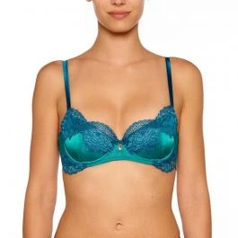 Der Balconette BH Adriana ist eine luxuriöse Seidenwäsche der französischen Edel-Dessous Marke Millesia. Der BH hat ungefütterte Halbschalen Cups mit Bügel. Der obere Teil der Cups besteht aus Spitze. Außerdem ist dieser BH auf der Innenseite komplett mit weichem luftdurchlässigem Tüll gefüttert.