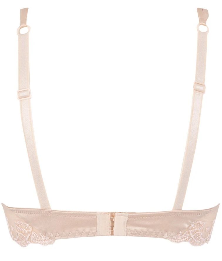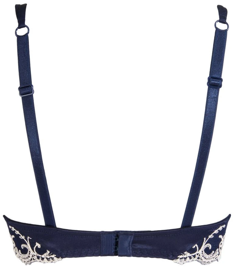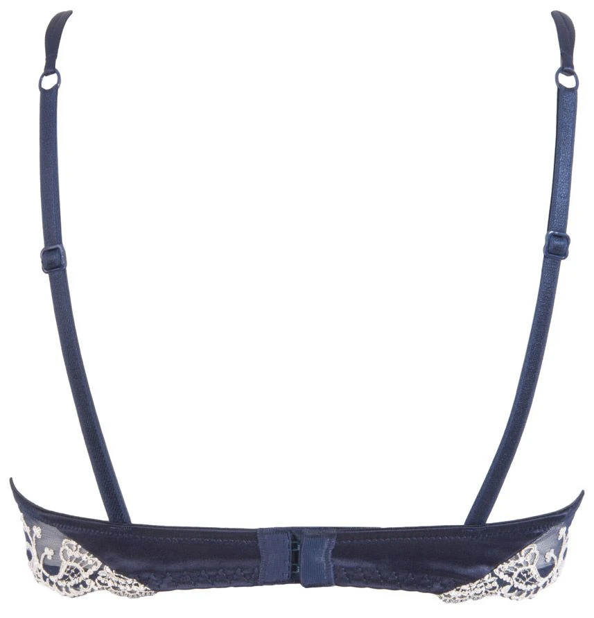 Der bezaubernde BH hat unwattierte Halbschalen mit Bügeln. Die Cups sind aussen größtenteils aus der feinen Seide. Der Rand der Cups ist aus dem transparentem Tüll, welcher mit hochwertigen Stickereien versehen ist. Vorne am Mittelsteg ziert eine kleine Schleife mit Zierstrassstein den zauberhaften BH. Hinten und an den Seiten besteht der BH aus dem bestickten Tüll, wobei hinten ein kleiner Seideneinsatz eingefügt wurde, um den BH abzurunden. Die verstellbaren Träger aus Satin sind vorne doppelläufig und hinten längenverstellbar. Dieses edle Zusammenspiel der unterschiedlichen Materialien und Akzente formt sich zu einem unwiederstehlichen Bügel BH, der sowohl für den Alltag als auch für besondere Anlässe perfekt geeignet ist. Aus dieser zarten Kollektion gibt es weitere, ergänzende Kombinationsteile seperat in unserem Shop.