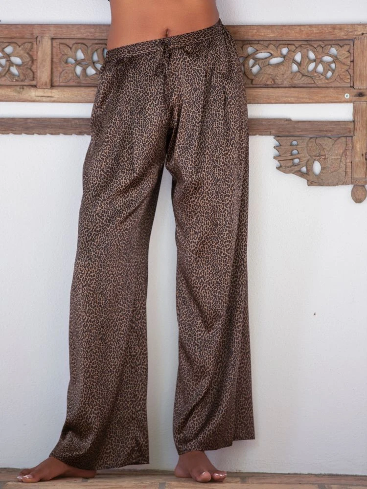 Seide Pyjamahose Omaya braun-schwarz von Marjolaine