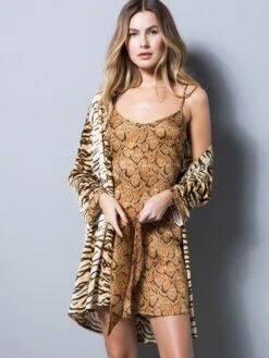 Für die Pflege dieses exquisiten Negliges empfehlen wir Seidenwaschmittel. Nach dem schonenden Waschen im Wollwaschgang oder per Handwäsche feucht in Form ziehen und liegend im Schatten trocknen.