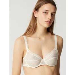 Der Bügel BH Miss Lejaby ist eine modische Lingerie der französischen Edel-Dessous Marke Maison Lejaby. Die Serie Miss Lejaby ist eine einfach zu tragende Spitzenwäsche für jeden Tag. Sie ist die Neuauflage der Linie Miss Liberty, die 1972 von Maison Lejaby entworfen wurde. Der BH hat unwattierte Cups, die bei dieser Marke als Vollschale bezeichnet werden. Die Cups mit Bügel sind aus Tüllspitze mit Blumenmuster gearbeitet und in der unteren Hälfte mit weichem Tüll hinterlegt. Dieser BH ist aus der Basic Kollektion von Maison Lejaby und jede Saison in einer neuen, modischen Farbe erhältlich.